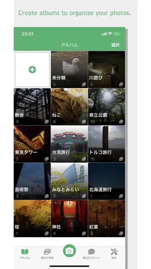 ・ Album can be created by event name, person, year, etc. and photos can be classified.
