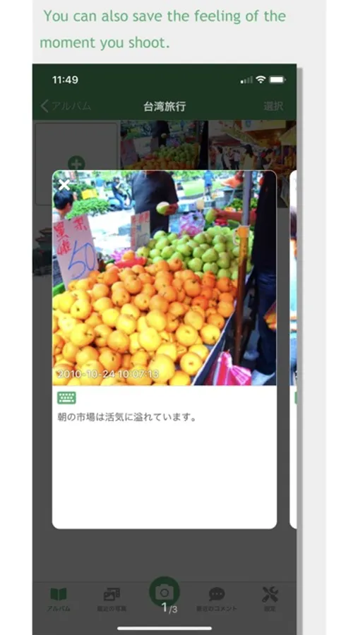 ・ You can record the situation when you took the picture and what you felt at the time together with the picture.