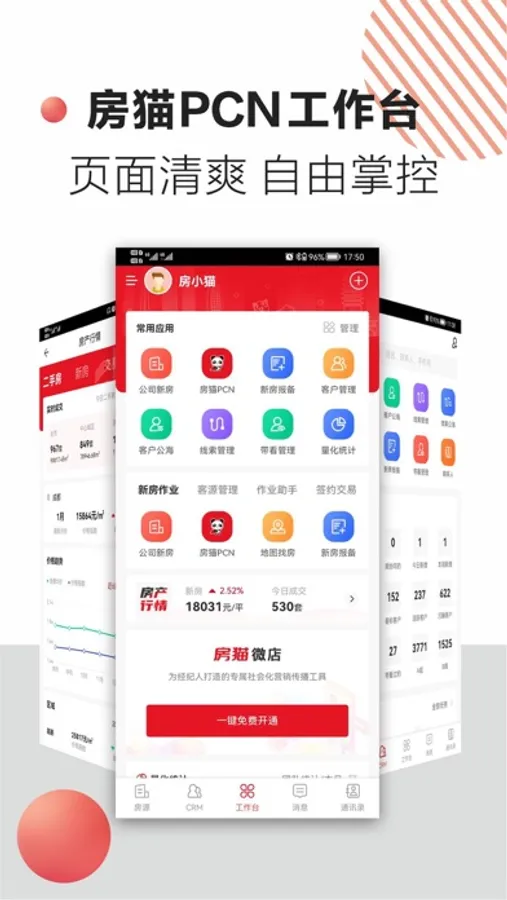 【数据分析】房猫CRM、量化统计将经纪人作业信息化、数据化,智能化统计并生成可视化分析图表,提升作业管理效能。