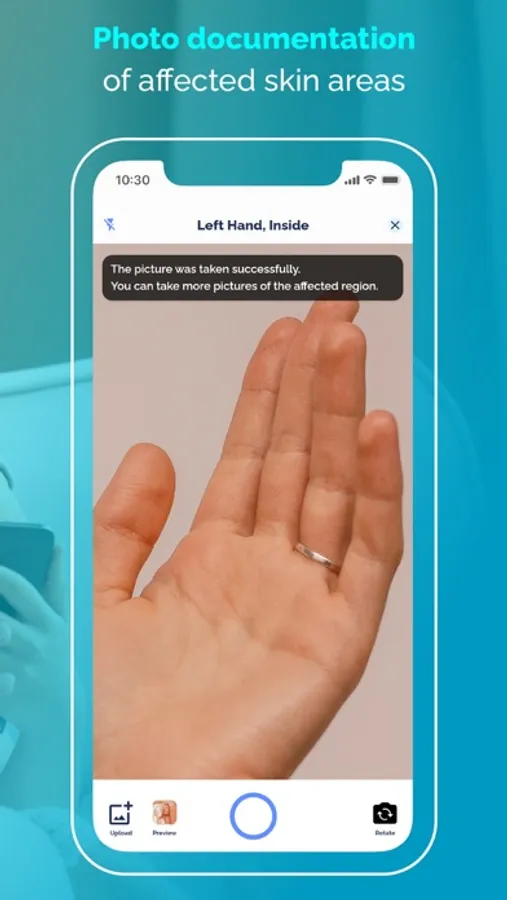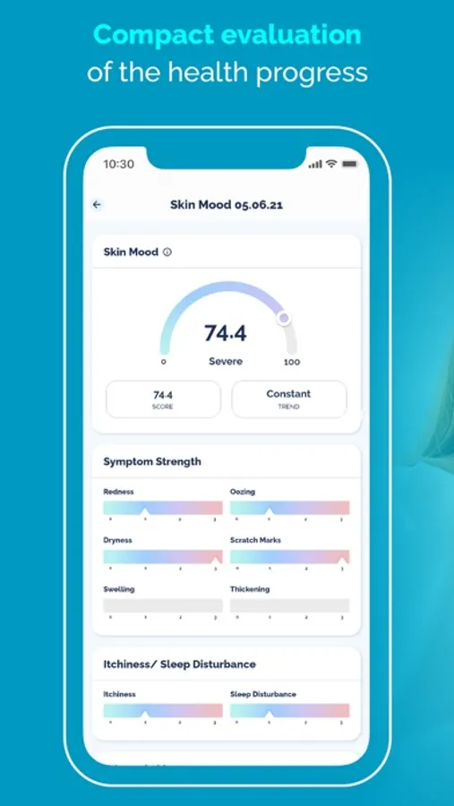 Mark affected areas on the body diagram, take photos and document the current severity of the eczema. In this way, you and your doctor will have the best possible overview of the course of your health.