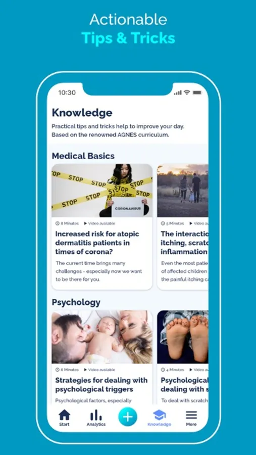 Nia is an artificial intelligence app, which offers full support for people with eczema. Patients and their relatives thus immediately receive personalized content and functions that help to improve their well-being.
