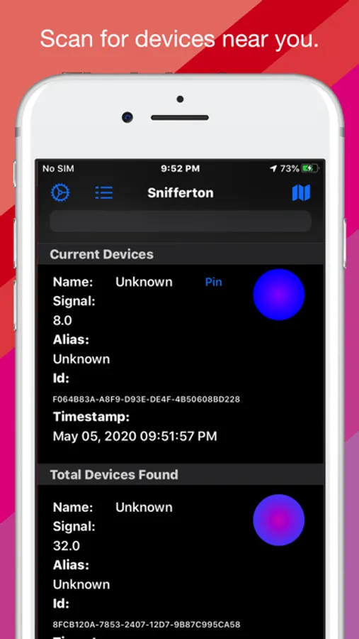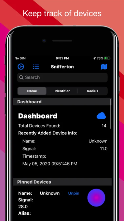 - Keep track of multiple devices at multiple locations and have them sync up with other Snifferton beacons with Snifferton Cloud
