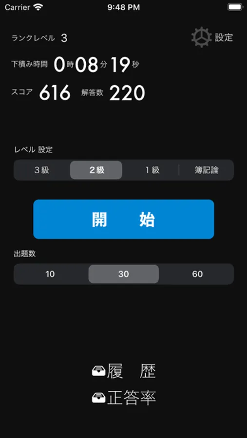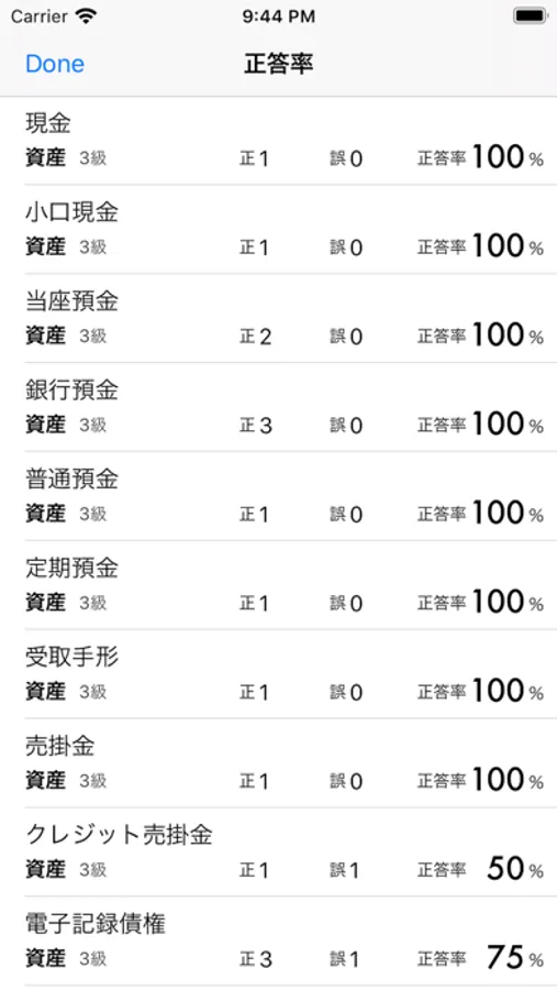 正答率の低いものから優先的に出題しますので、効率的な暗記が出来ます。