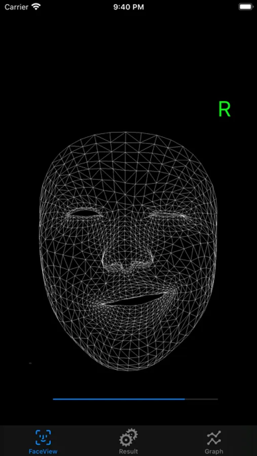 額のしわ寄せ、閉眼、鼻翼の動かし、頬膨らまし、口笛、イーと歯を見せる一連の動きを行なった後、Resultボタンをタップすると評価が表示されます。