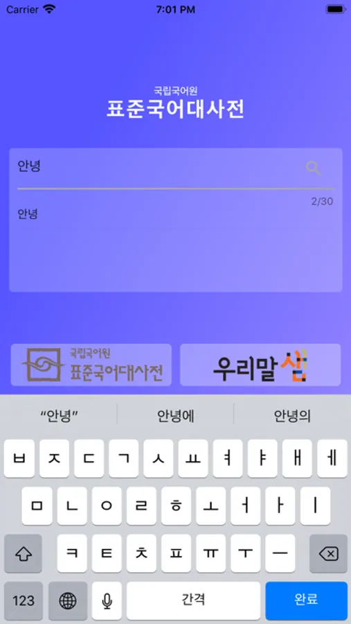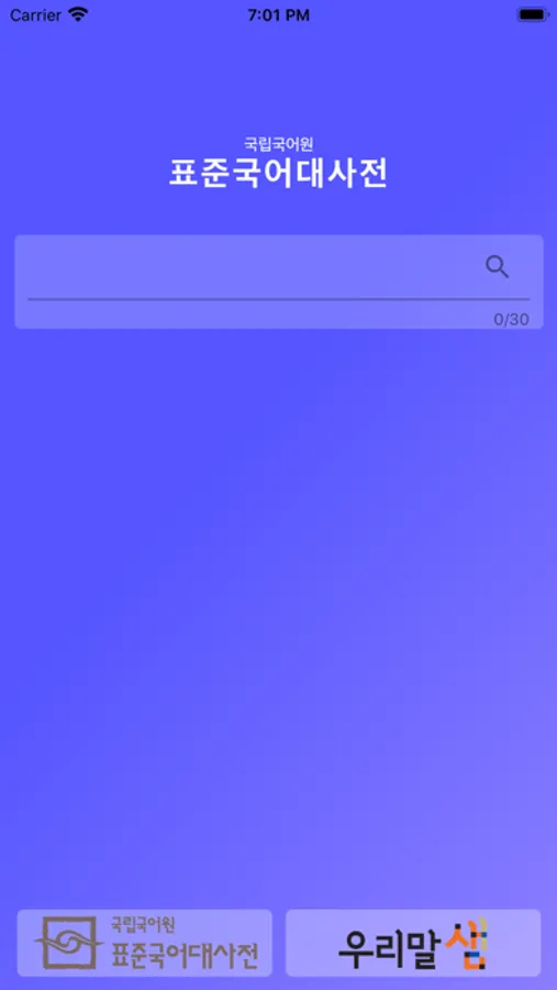 이 앱은 국립국어원에서 공식적으로 제공하는 표준국어대사전의 open api를 이용해 제작된 앱입니다.