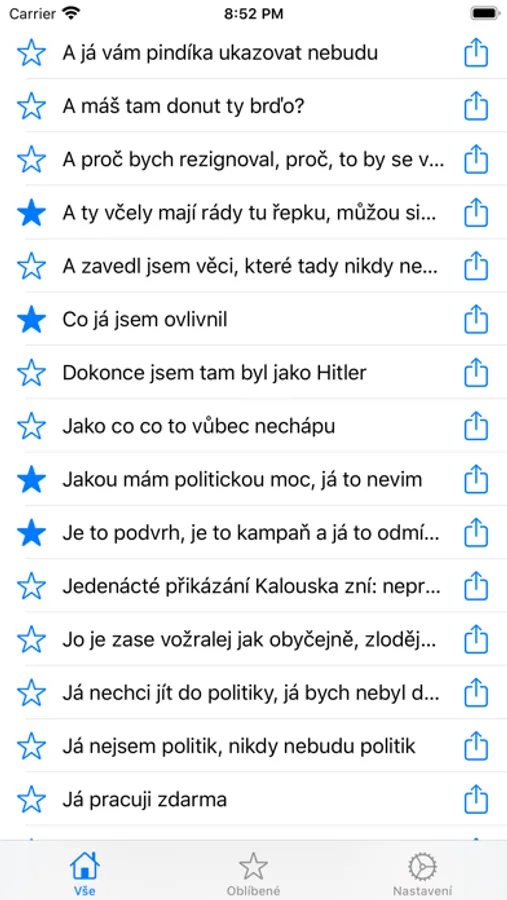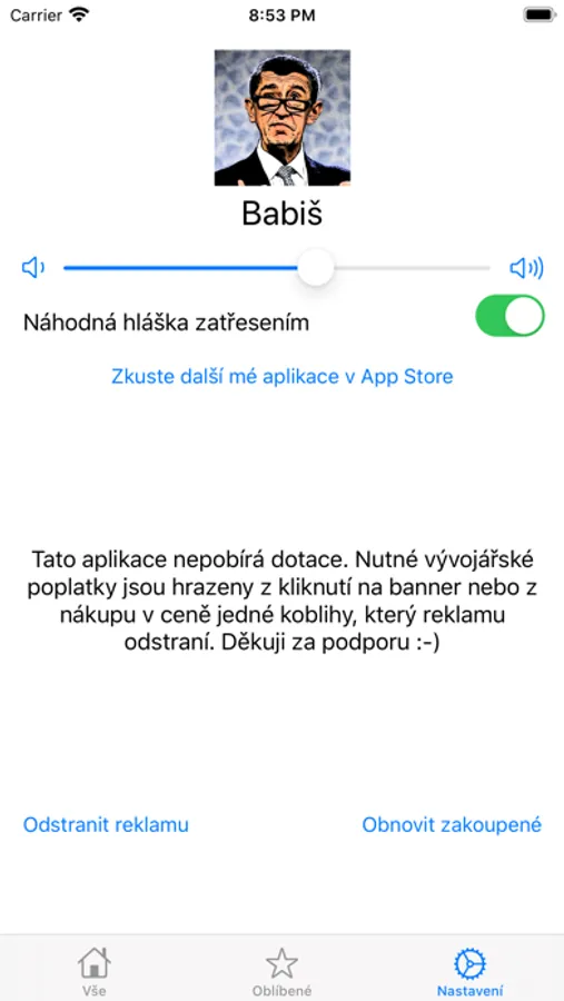 - Náhodné moudro zatřesením telefonu (zapnete v nastavení)