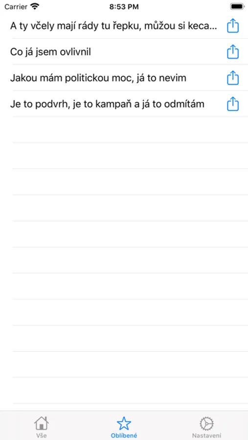 - Možnost aktivace sdílení (text + MP3 soubor) do emailu, iMessage, Messengeru, AirDropem apod.