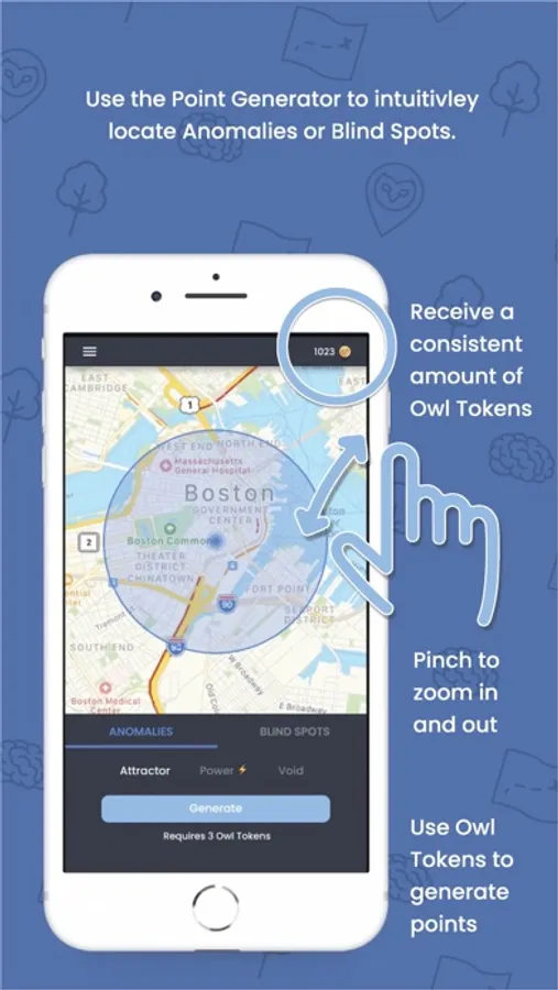 The app uses both pseudo and quantum entropy sources for randomization which provides a set of coordinates that can be opened in a map to navigate to or the user can digitally explore the coordinates. While “Blind Spots” are random points meant to be visited for exploring the unknown world around you, choosing an “Anomaly” type coordinate will run an algorithm over your radius to find the most statistically improbable distribution of random points within your radius. These are destinations where the real magic happens.
