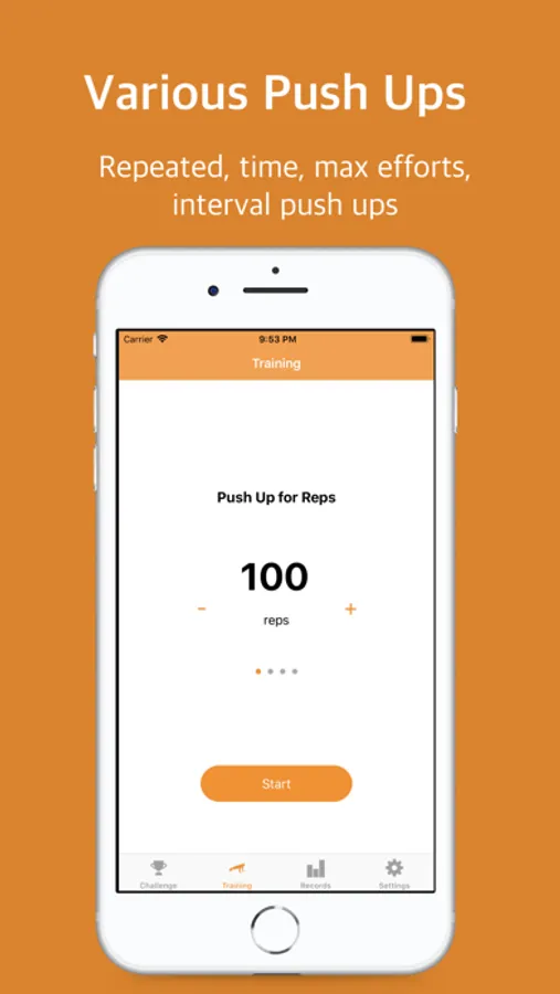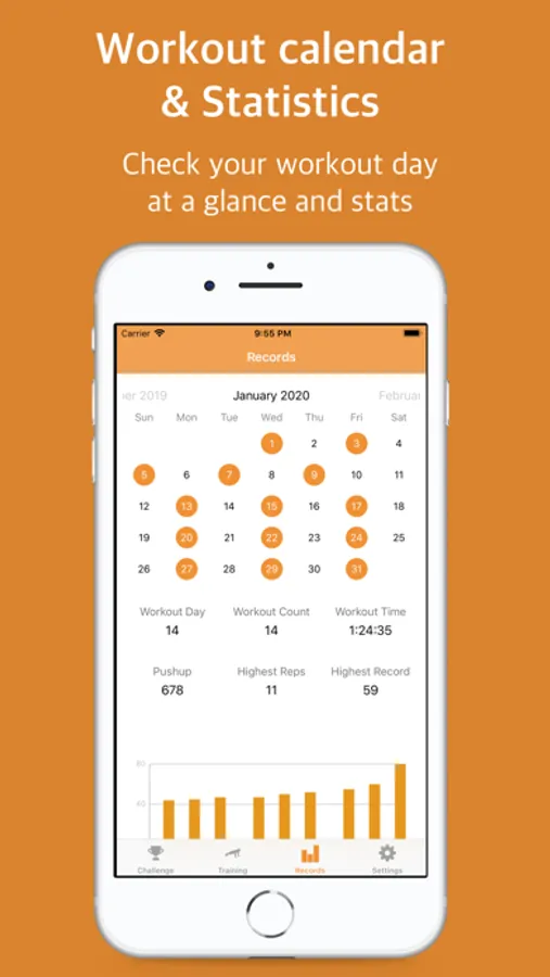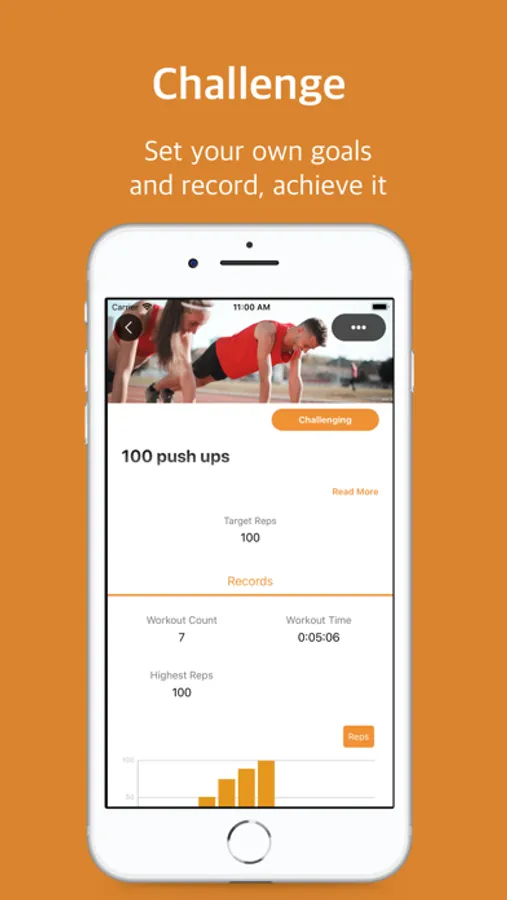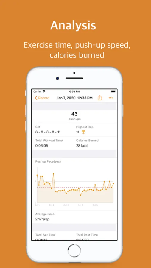• You can see the total number of pushups, the number of times per set, exercise time and calories burned.