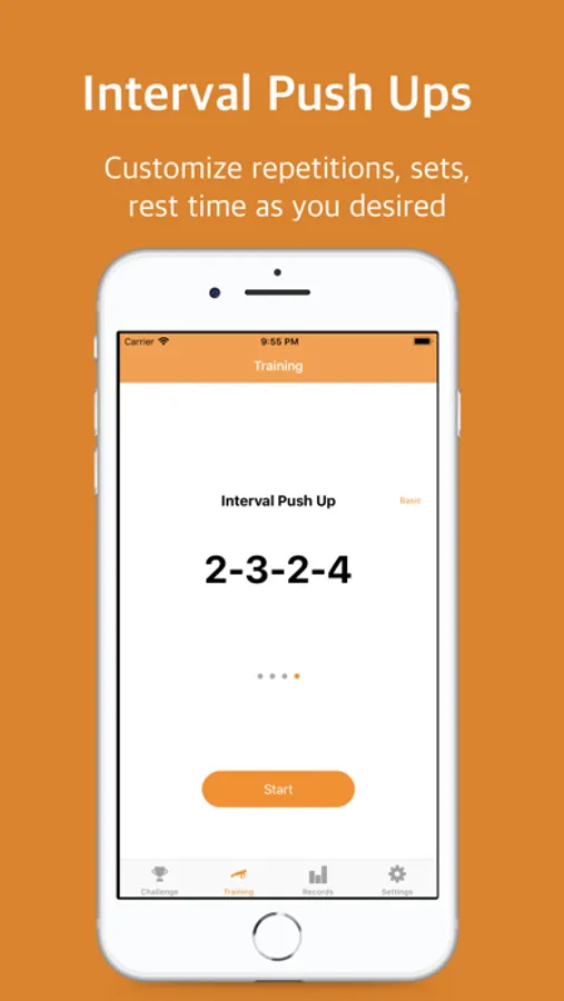 • Interval Push-Up: You can make the number of times and breaks for each set by own.