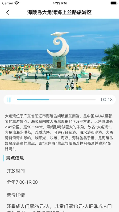 帮助旅客了解广东省各大旅游景区,支持中英双语解说.