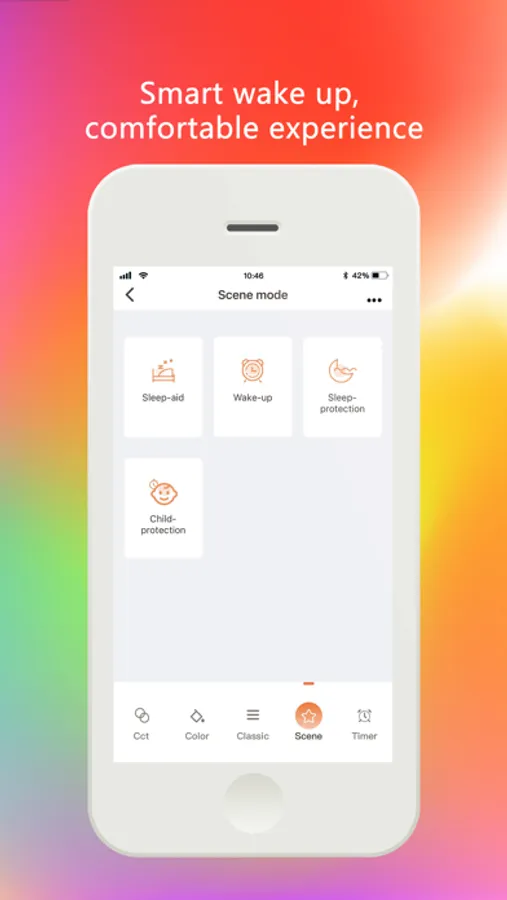 Not only have romantic pink, Yoga blue, candle-light gold etc various scene modes but also own sunlight awakening, morning sunbath, melatonin line, sleep-aid mode and so on smart modes originating from life to protect sleep and body clock.