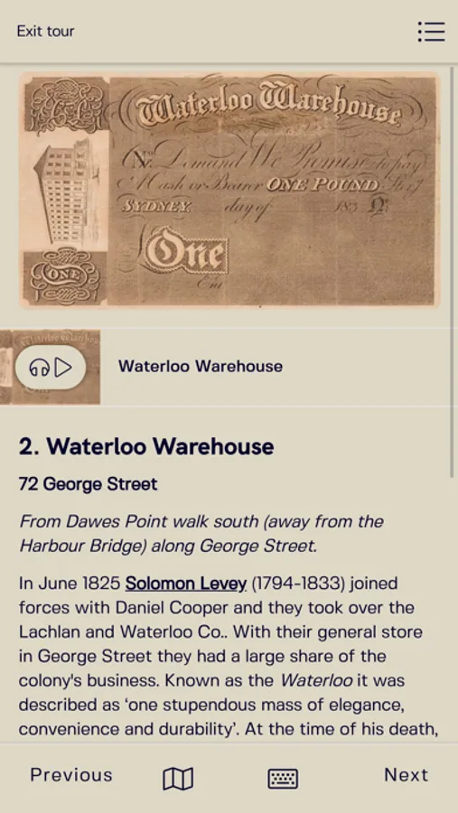 A Walk of Jewish Australia, developed by the Australian Jewish Historical Society with support from the City of Sydney, has free self-guided walking tours of some of the most interesting, surprising, and meaningful Jewish moments and characters in Australia's past.