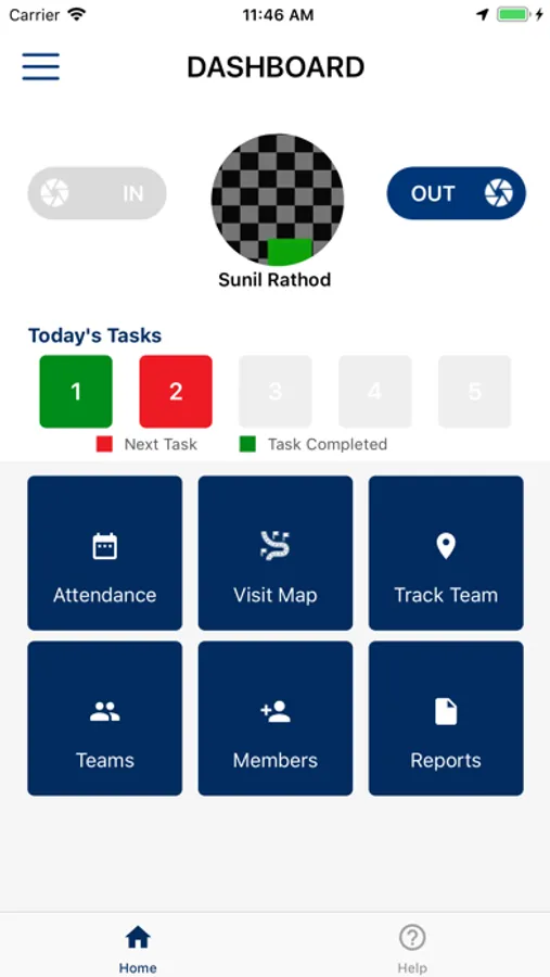 d) Check-out after attending to the task by providing visit notes and check-up status (completed, pending, cancelled)
