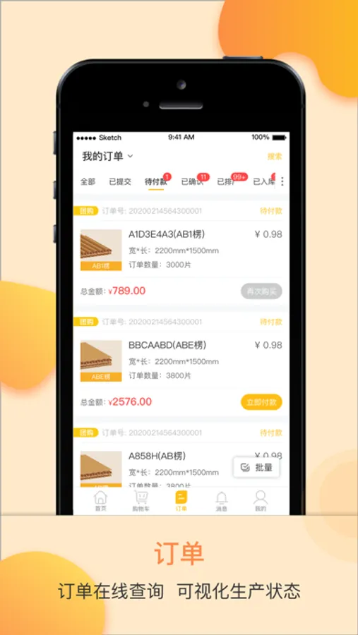 【订单】方便您查看订单生产状态,统计您的常购清单;