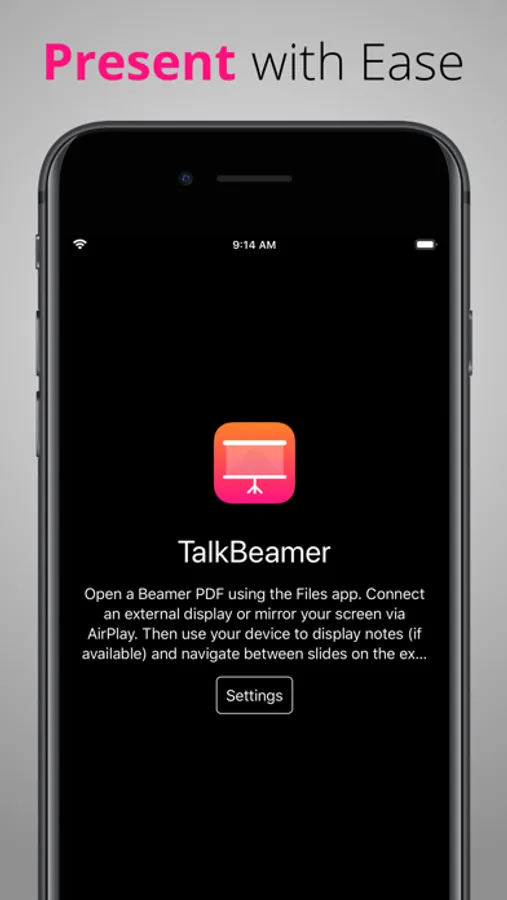 • Present PDF slides without notes: Your iPad or iPhone will show the current slide