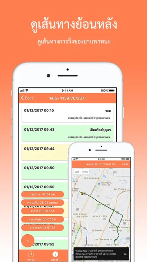 -การตรวจสอบย้อนหลัง เส้นทางการเดินรถ สถานะ ความเร็ว อุณหภูมิ