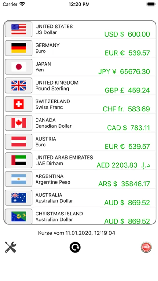 The currencies are updated every minute.
