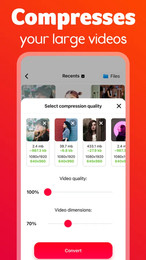And that's not all! Image Converter also comes with a video compression feature that lets you reduce the size of your videos without sacrificing quality. This can be especially useful when you want to save storage space on your device or share videos with friends and family over messaging apps or social media.