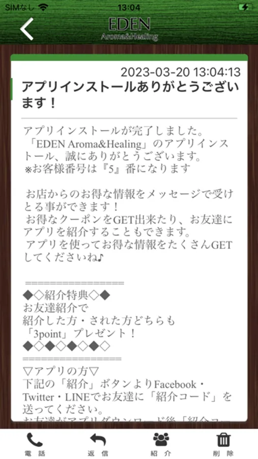 EDENのアプリをSNSを通じてお友達に紹介する事ができます。