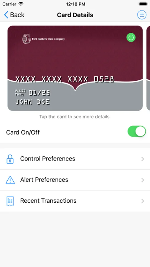 Protect your debit card 24/7 with the FBTC Card Control app by First Bankers Trust Company, N.A. Get notified every time your card is used, set limits and restrictions on what transactions you want to allow, or even turn your card off. You decide!