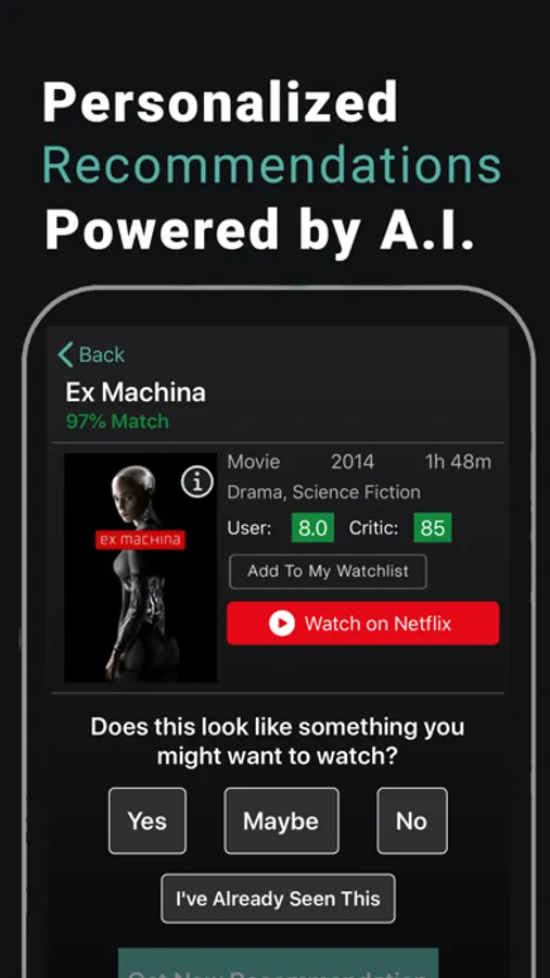 √ Get personalized movie & show recommendations based on what you like to watch, using A.I.
