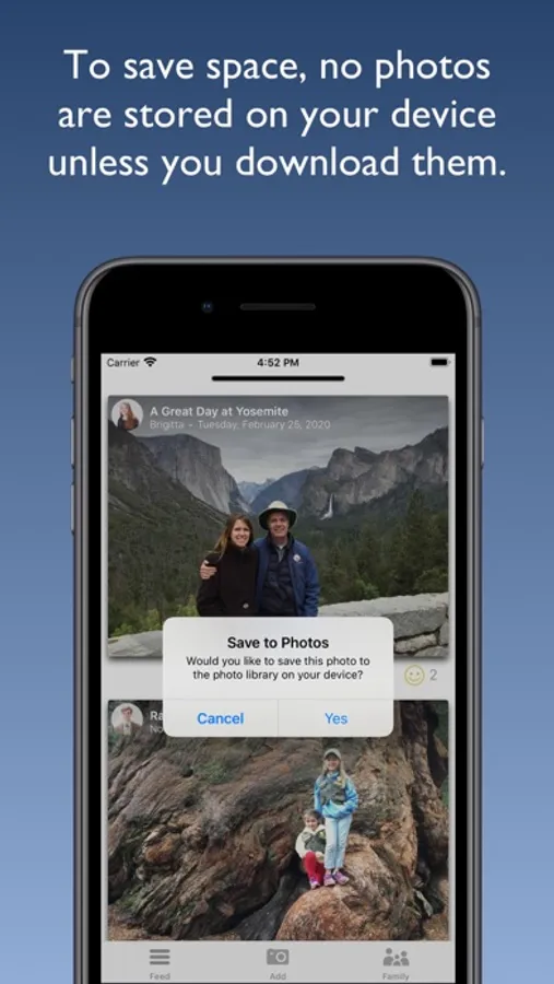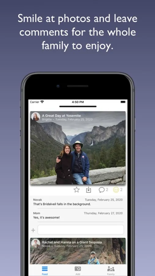 Share photos, make comments, smile and keep in touch with your family without worrying who else is watching your feed. And parents and kids that have launched from the nest don't have to "friend" each other on a huge ad-driven platform just to share what's going on.