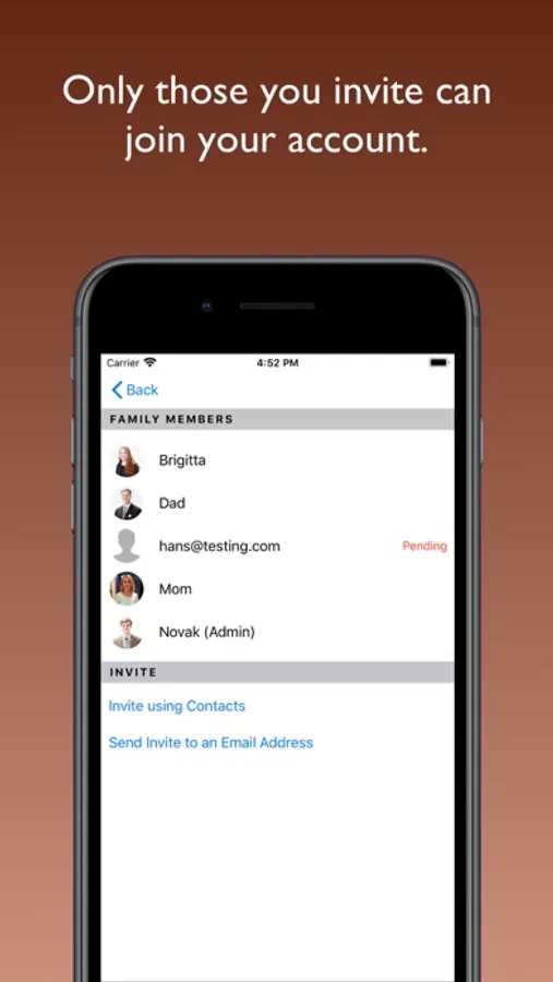 Create a free account and invite your family members to join you. Access to your account is invitation-only. Invite just your immediate family to join your account, or expand it a little to include grandparents and maybe some others. It's up to you.