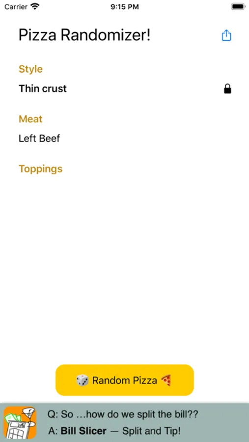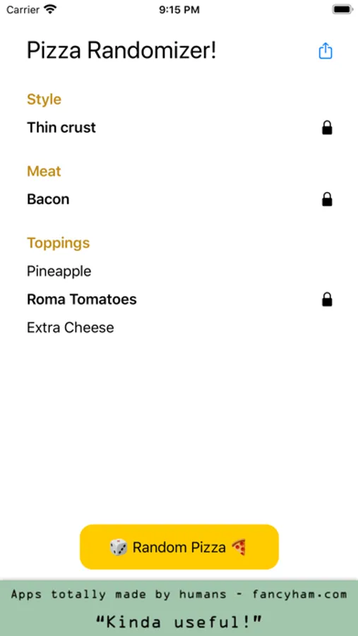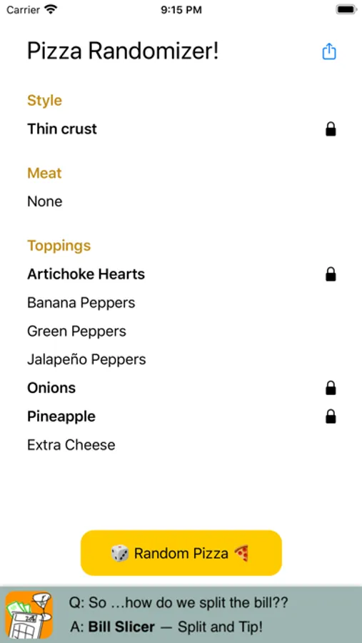 Randomize, tap the ones you like, then roll again, till you get the perfect pie.
