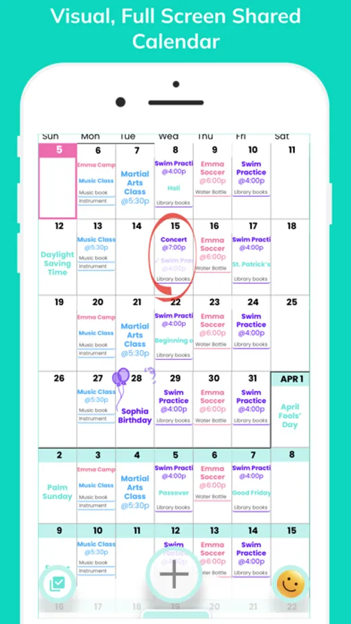 Using the app is a breeze, with a visual, full screen calendar, quick add events, and event auto save. Changes you make synchronize in real-time to your family member’s calendars.