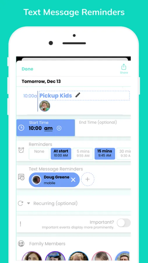 Make sure your family members are getting notified. You can set up your family member notification times. You can even set events to send text message reminders to those who don't have the app yet.