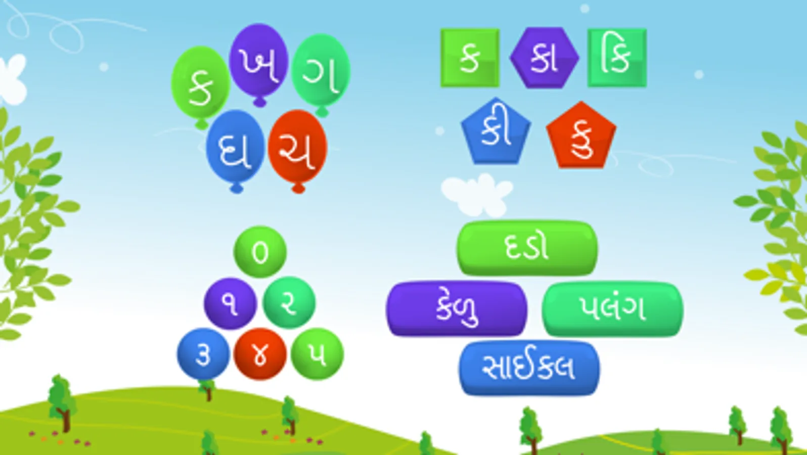 Learn Gujarati Basics including Letters, Numbers, Barakshari, and Words. Interactive activities make learning fun. The app provides ample variety by giving several objects, colors, and line sizes for hours of learning and fun.