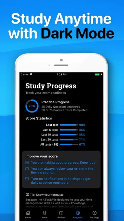 - You can track how many questions you have done correctly, incorrectly, and get a final passing or failing score based on official passing grades