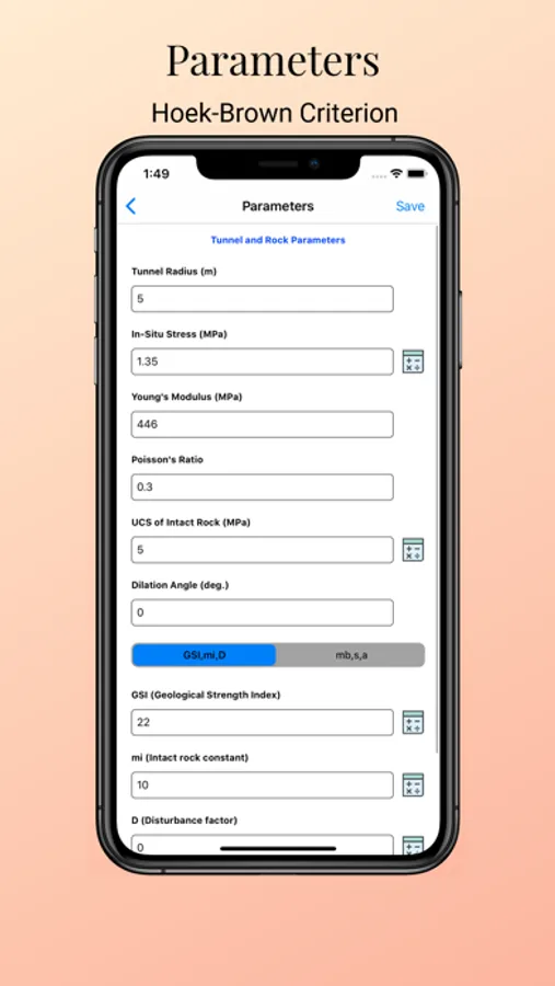 - The parameter calculator dialogs are available to help you to calculate some of the parameters (i.e. GSI, mi, D, UCS, insitu stress and etc).
