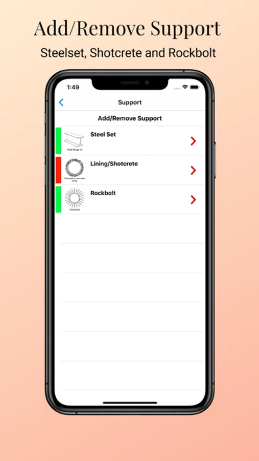 - Three different support types can be added to the model: Rockbolts, Steelsets and Shotcrete