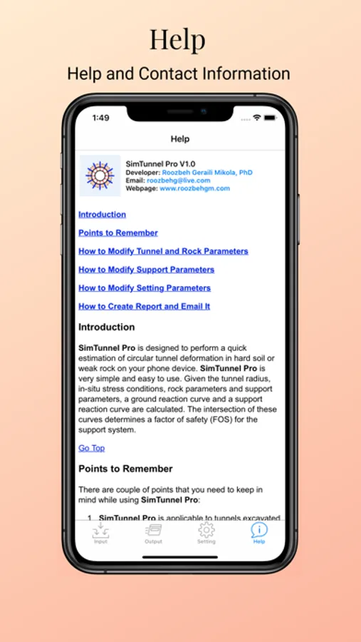 SimTunnel Pro is designed to perform a quick tunnel analysis on your phone device. SimTunnel Pro is very simple and easy to use. SimTunnel Pro uses "rock-support interaction" or "convergence-confinement" method to estimate the deformation of circular tunnels in weak rock, and visualizing the tunnel interaction with various support systems.