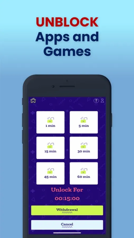 For your child to study, Learn It 2 Earn It has created a time bank. The time bank stores the rewards from their completion and mastery of lessons. When your child is ready to play, they are free to withdraw their balance from the time bank. Once their withdrawn time has run out, their apps and games will be locked again and if their time bank is empty, they go back into the learning cycle to earn more time.