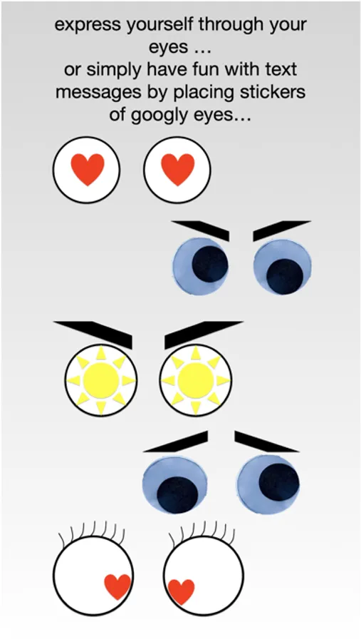googly eyes and heart eyes for all your messages, pictures, and whatever you want to put eyes on...