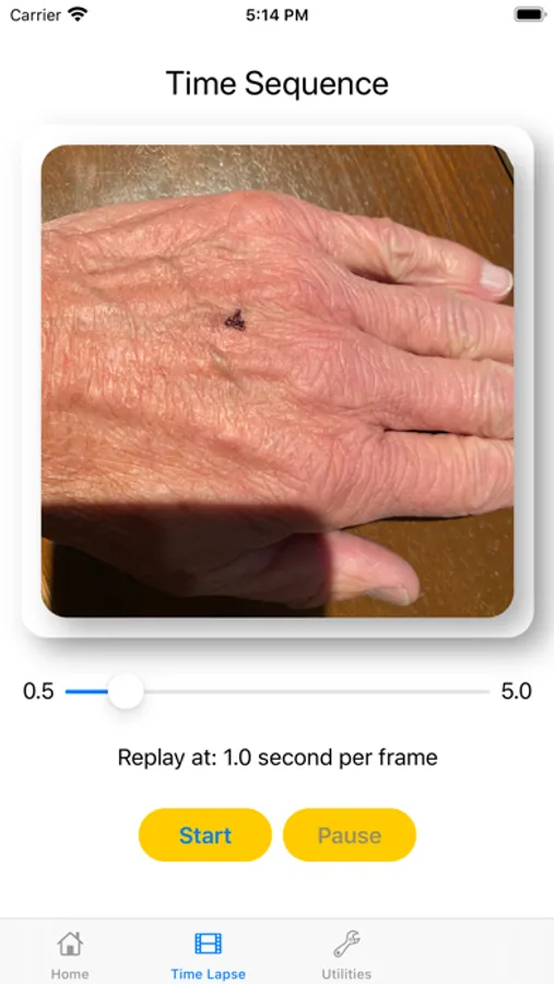 This app allows the user to photograph skin conditions and play a series of photos showing changes over time. The user can set a notification interval for reminders to take photos. Comments on changes and tags for identification can be added. iCloud synchronization is supported.