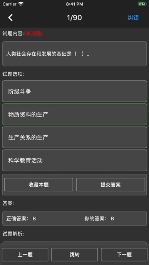 试题纠错: 如果您觉得我们的试题有不正确的地方,可以在通过纠错功能告诉我们,我们进行试题修正后,用户通过更新对试题进行纠错