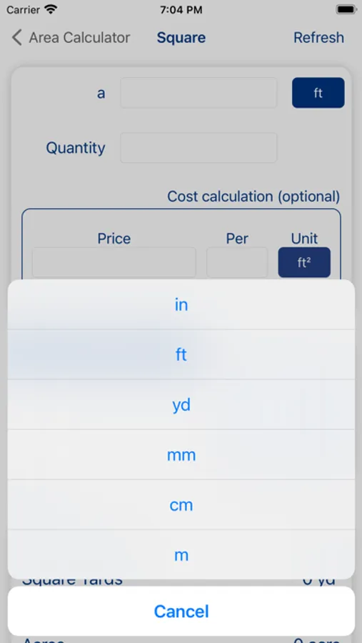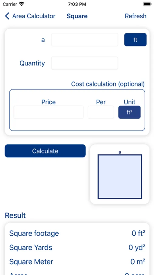 Our application helps you work out an area of square feet, square meters or square yards for flooring, landscaping, carpets, tiling or construction projects. This tool also provides a cost of materials estimate.