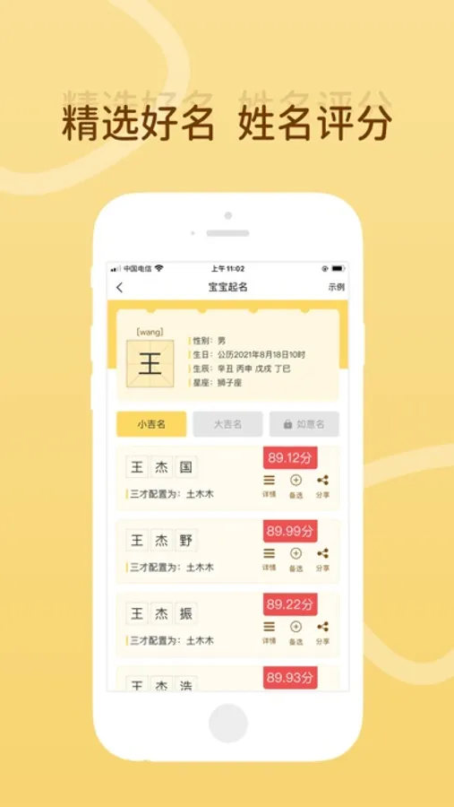 【一键起名】根据宝宝的生辰八字,结合命理、星象黄历辅以三才五格、生肖喜忌、81数理搭配,兼顾音、形、意起名打分,为您推荐高分吉名,更有海量美名,免费任您挑选。