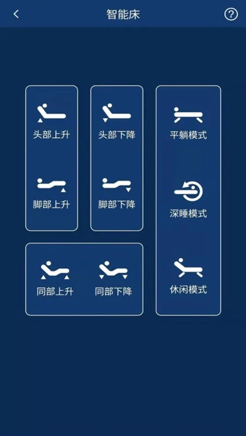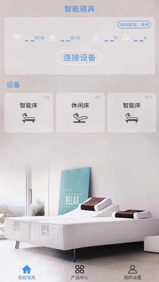 智能寝具APP是一款结合本公司的智能床,智能沙发设备的一款APP,用户可以通过智能寝具APP操作本公司产品的头部抬起高度,脚部抬起高度,软硬度,温度等等,使用户有一个更舒适的睡眠体验。