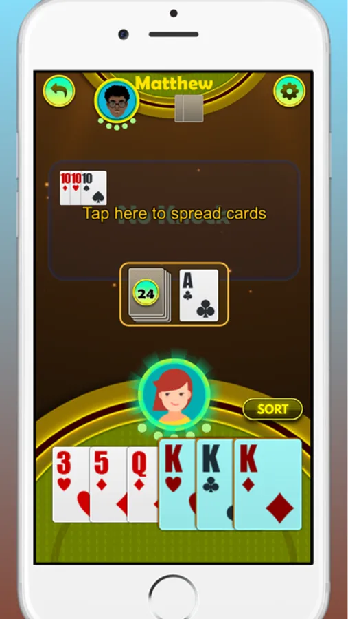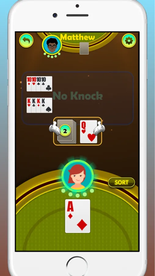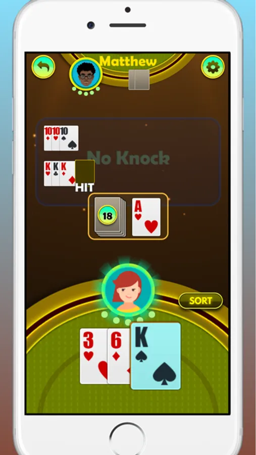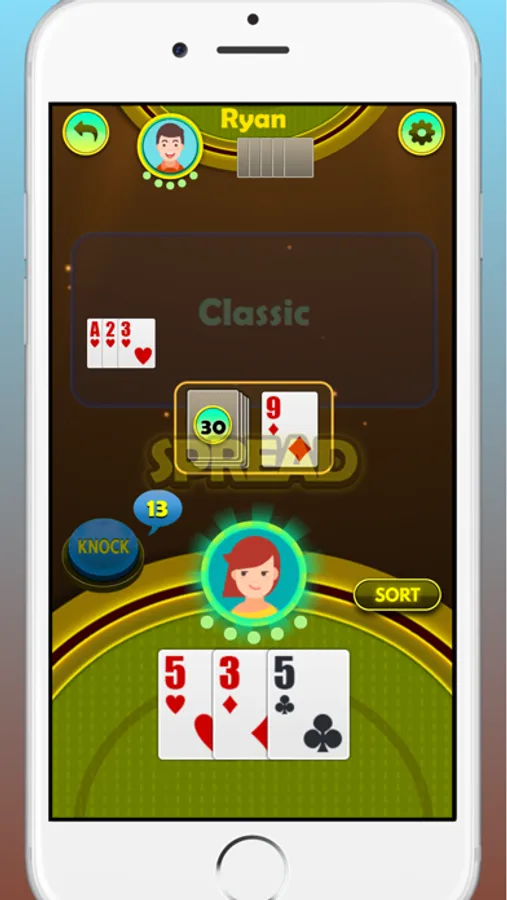=> Classic (Knocking): In Classic Knock, only a player knock with any low deadwood count. Once user spread cards user restrict to knock game till next 3 turn, Once user able to knock and as low count "KNOCK" option declare the result.