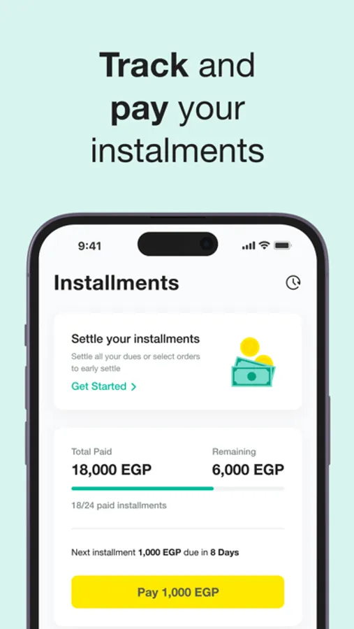 You can pay your monthly installments easily through your electronic wallet, Vodafone Cash, Fawry, Aman, Bee, or through your credit/debit card. Fawry, Aman, and Bee are also available through more than 200,000 electronic payment outlets across Egypt.