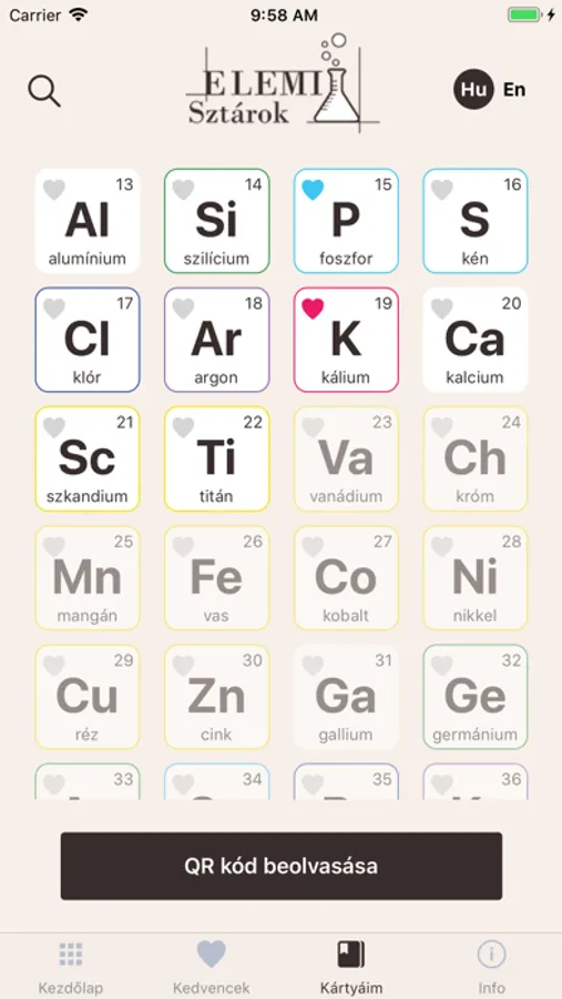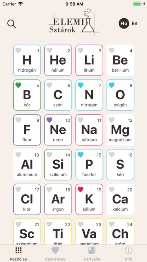 Az Elemi sztárok bemutatja a periódusos rendszer 118 elemét. Az információk köre folyamatosan bővül, a periódusos rendszer elemeinek alapadatai mellett videók és linkek is elérhetőek, hogy te legyél a sztár, aki mindent tud az elemekről. Az app a Tudástársadalom Alapítvány tartalomfejlesztése.