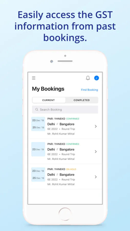 Easily search for bookings with PNR, sector and customer name. Additionally, the bookings have been segregated into ‘upcoming’ and ‘completed’ status to enhance usability.