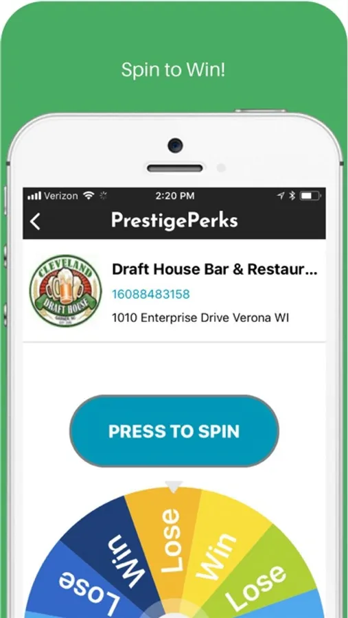 Play the Spin to Win game! If a participating business is doing Spin to Wins, when you tap your phone the wheel spins and gives you a chance to win a special reward!