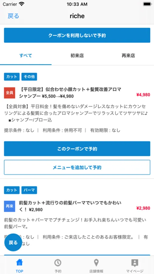 お得なクーポンが配信されます。ネット予約時にクーポン利用での予約も可能なので来店時もスムーズに施術頂けます。