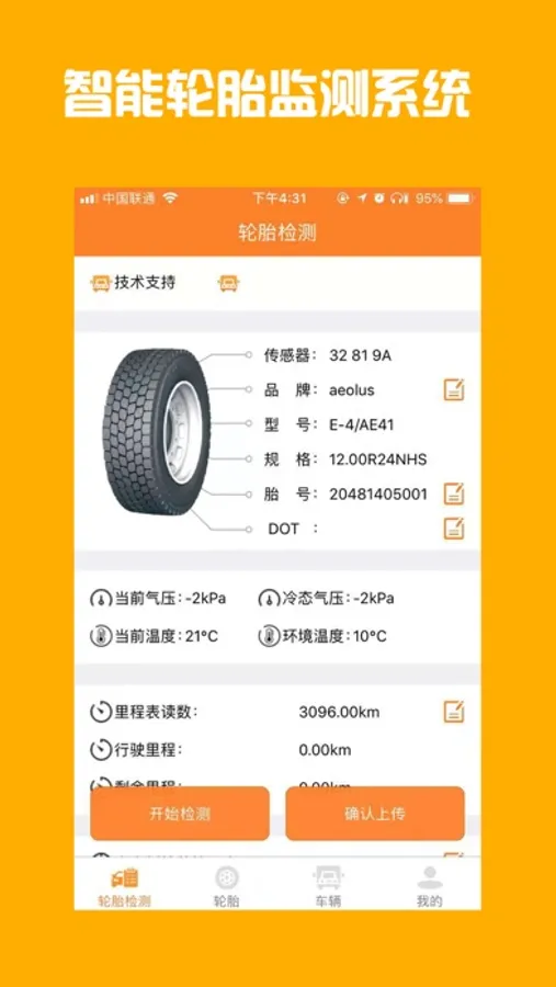 本APP具备轮胎管理,车辆管理等。可以检测轮胎压力,温度,远程查看轮胎详细情况。轮胎全生命周期报表,不同轮胎的数据比较功能。